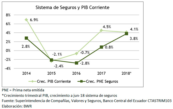 La penetración de los seguros en Ecuador continúa siendo baja (1.7% del PIB) mientras que en países desarrollados la participación de seguros frente al PIB puede alcanzar hasta el 10%[1], por lo cual se considera que la industria tiene oportunidades de crecimiento en el largo plazo. No obstante, en el corto plazo y con un entorno de menor demanda, se aprecia un incremento de la presión competitiva a través de la búsqueda de diferenciación y a la eficiencia en el manejo de los costos operativos.