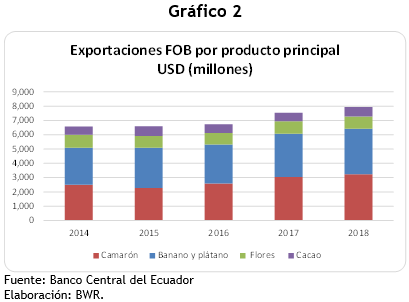 En 2017, el país exportó 326 millones de cajas de banano y en el 2018 se exportaron 330 millones de cajas. Según estimaciones de la Asociación de Exportadores de Banano (AEBE), se espera que las ventas totales de este año superen al menos las 340 millones de cajas .